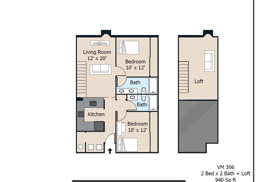 2 Baths | 940 Sq. Ft.